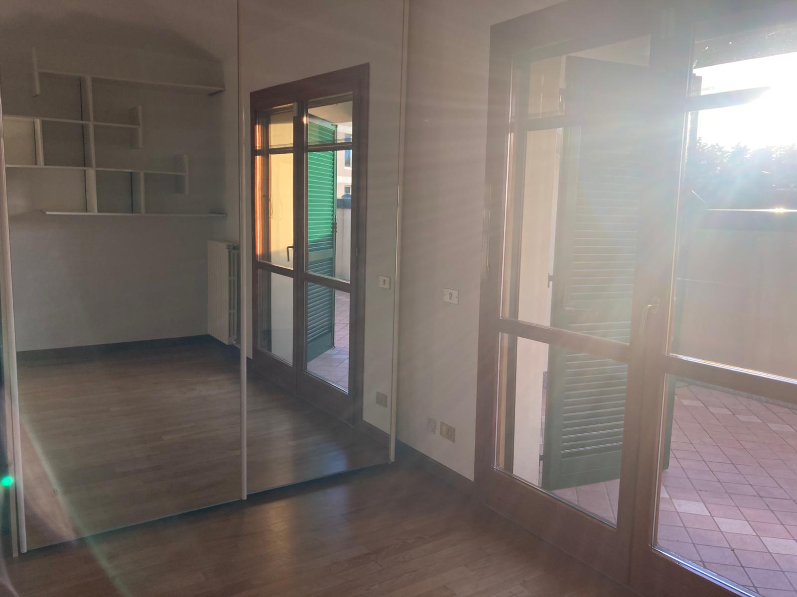 Ampia Camera con cabina armadioe terrazzo annesso, Camera con terrazzo annesso, bagno (doccia). Pavimenti in parquet.